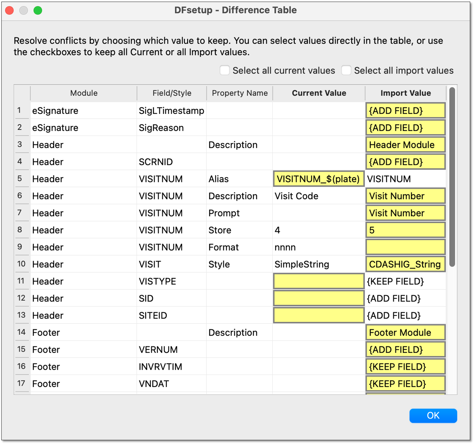 Importing setup from Excel, JSON, or another study now allows merging with existing styles and modules through a conflict resolution dialog.