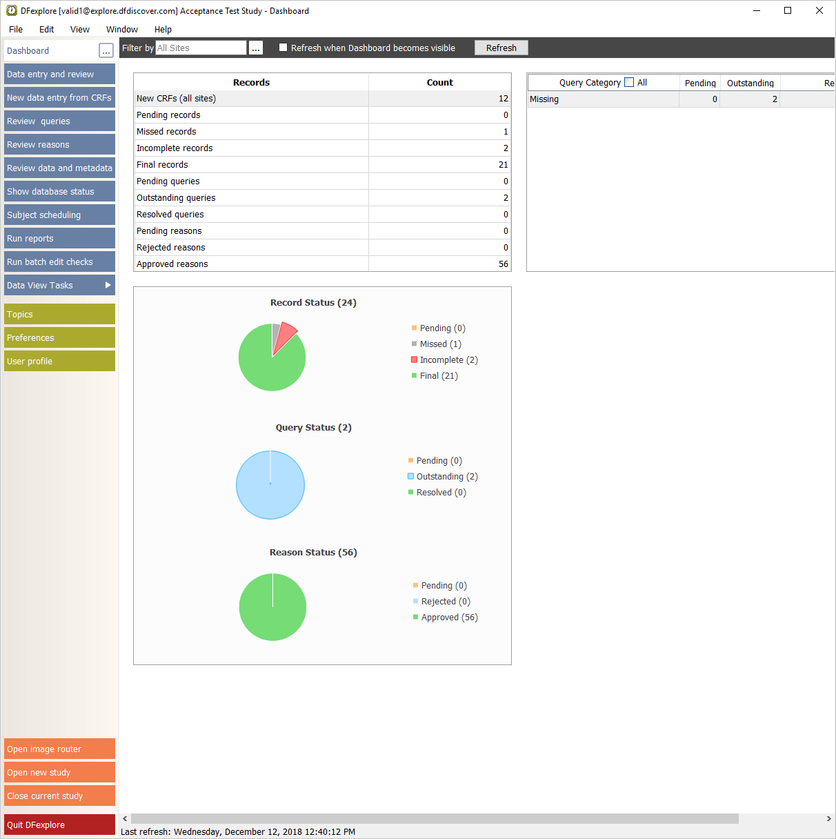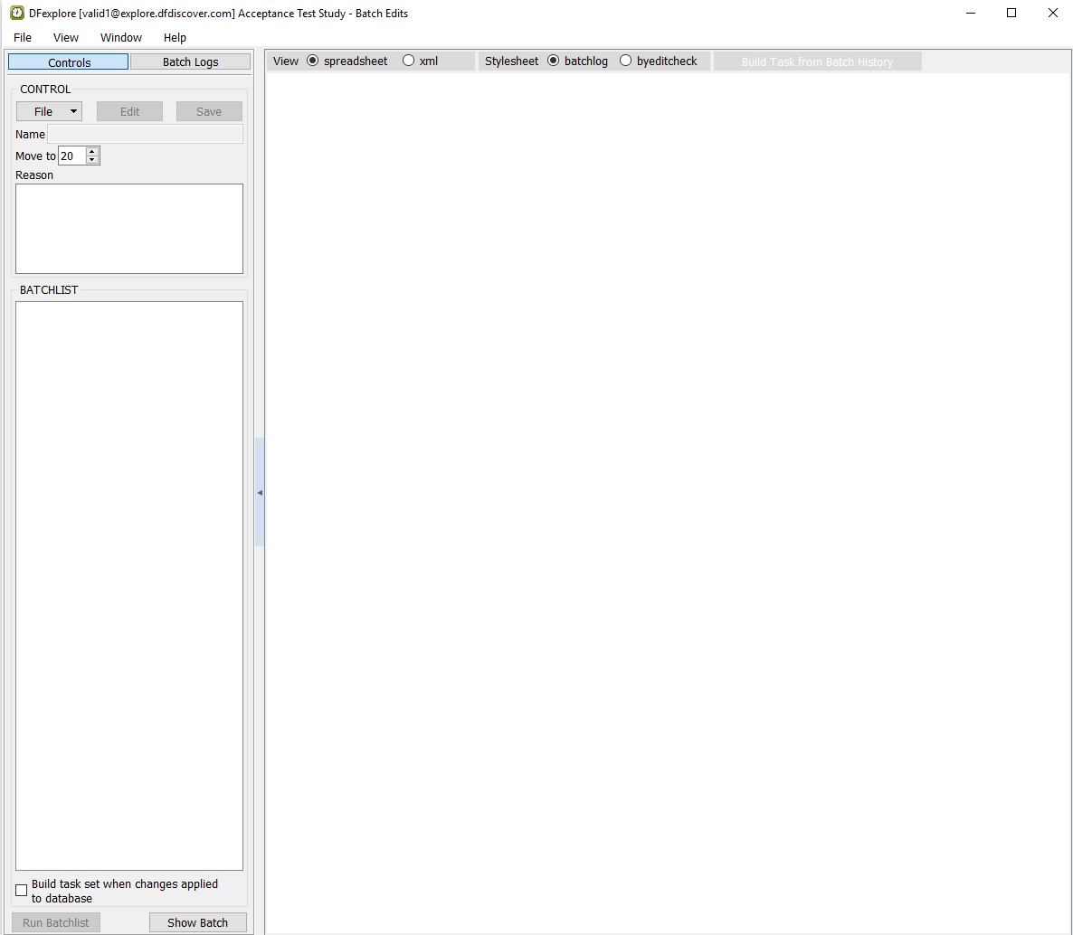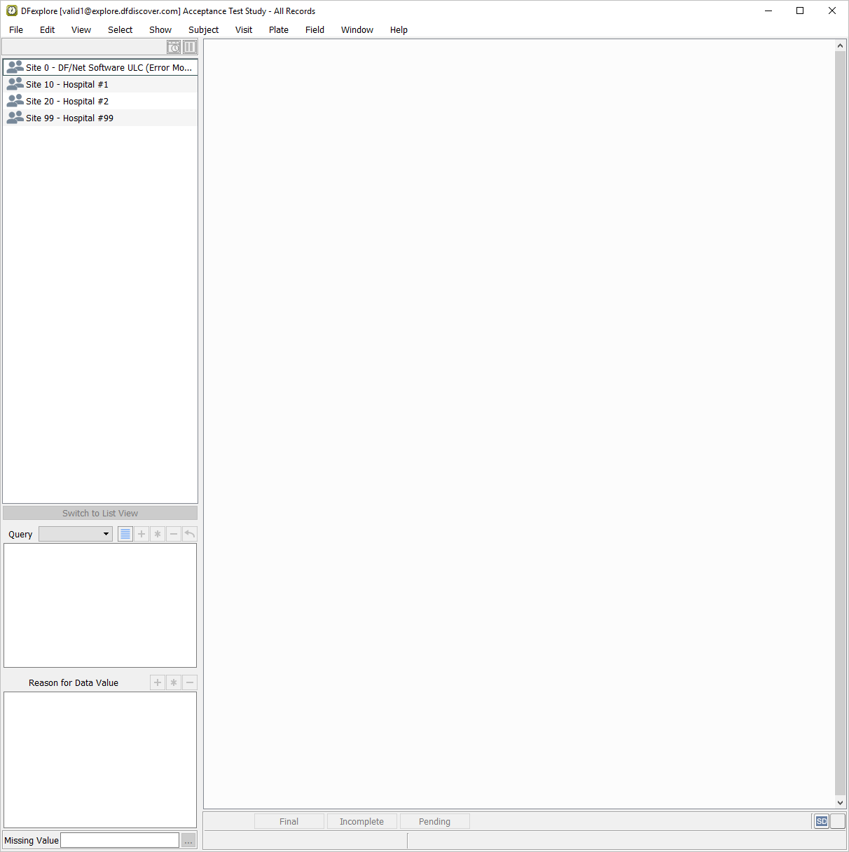 Open the Acceptance Test Study and verify the standard DFexplore views.