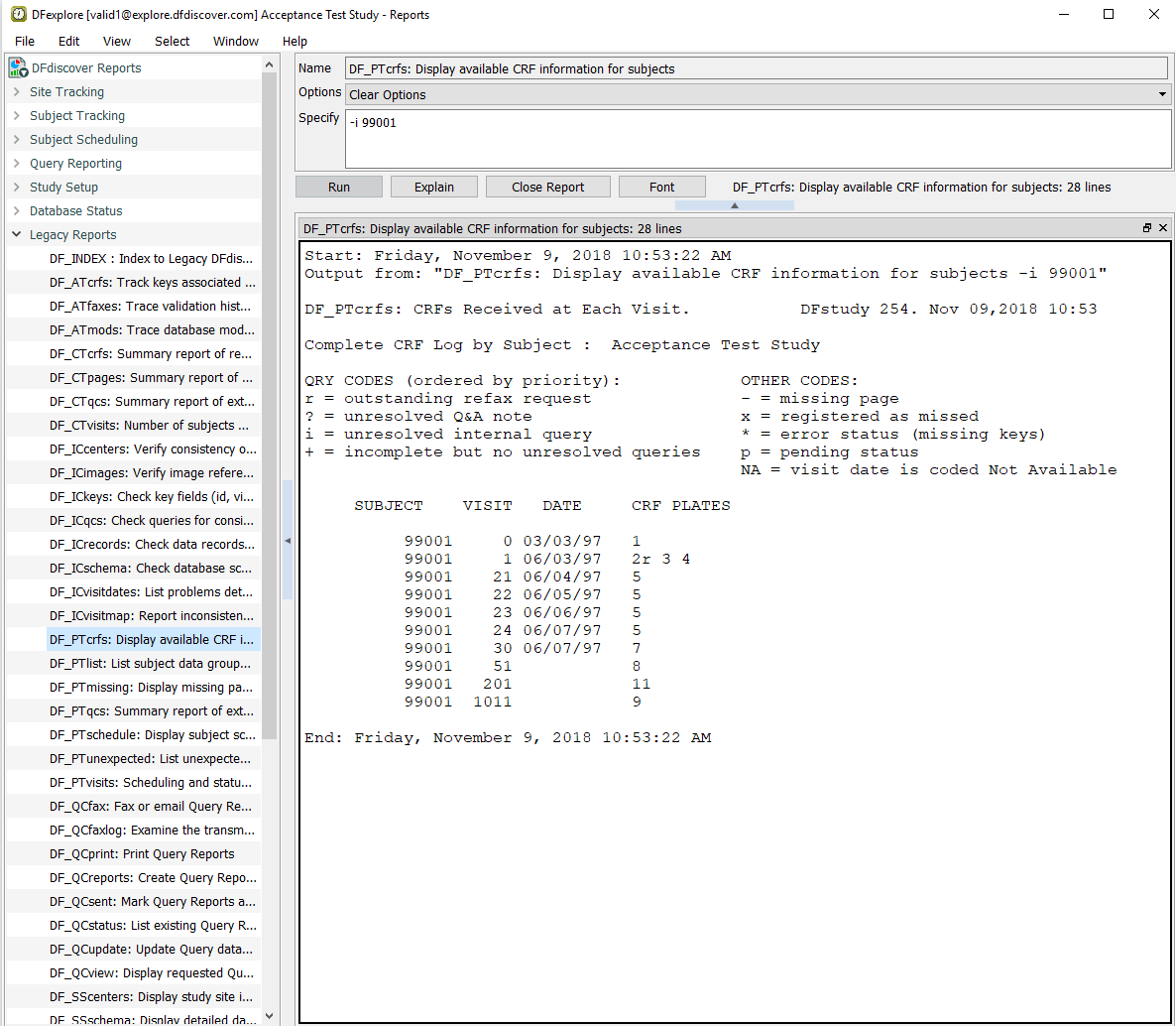to run the report for subject 99001.
