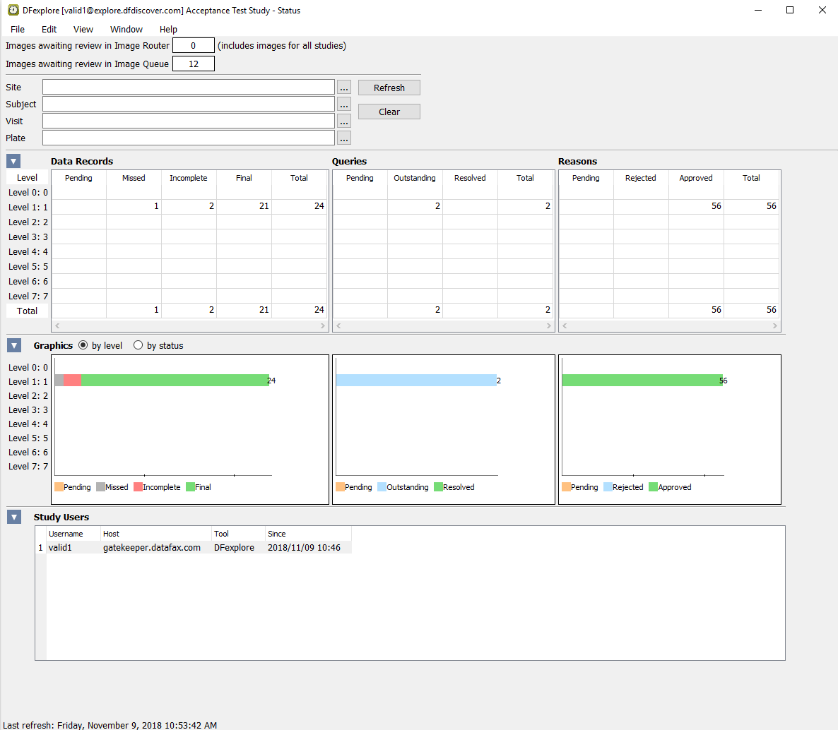 Any pages that have been received and which DFdiscover could not identify as study CRFs will be found in the Image Router. As a result, the number of Images awaiting review in Image Router may differ from what is shown here. |