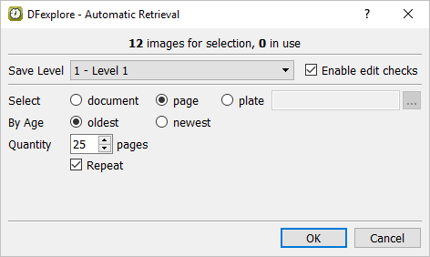 Select > to make Image view the current view. Set Quantity = 25. Do not change any other settings in the Automatic Retrieval dialog and click to retrieve the new documents.