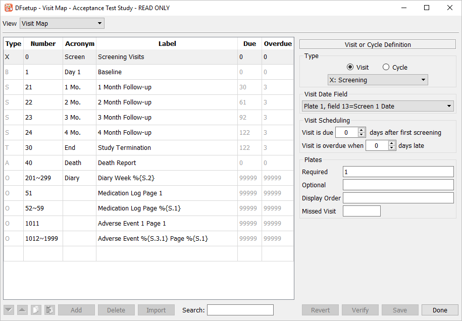 Select > to open the Visit Map editor. Visually confirm that the expected contents are displayed. Click to close the editor.