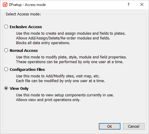 Choose View Only and click to continue. The main DFsetup window opens.
