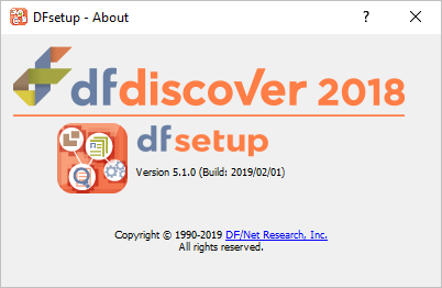 Start DFsetup and verify version information.