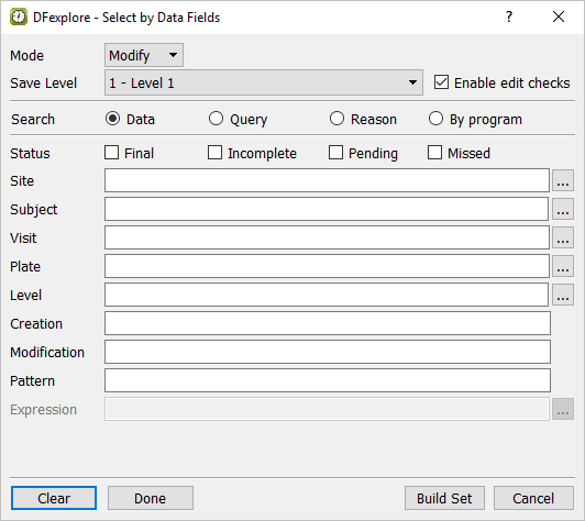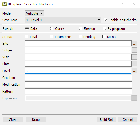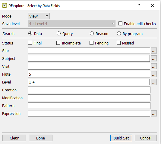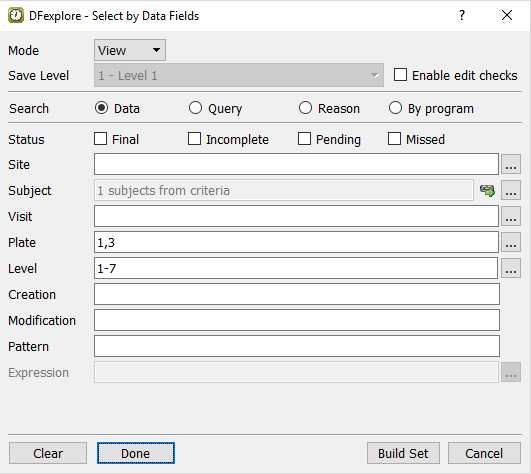 Select > from the menubar to open the Select By Data Fields retrieval dialog. In the dialog, set: