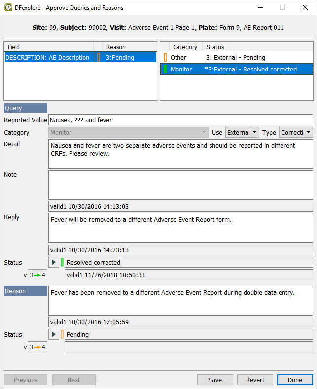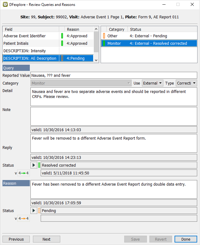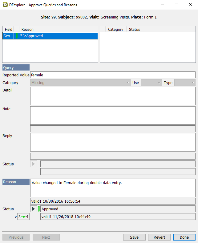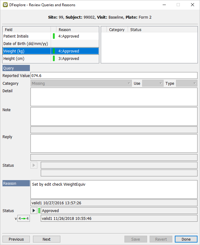 Double-click Subject 99002. Select entry for 2 : Form 2. Select > to review all queries and reasons that are present on the page.