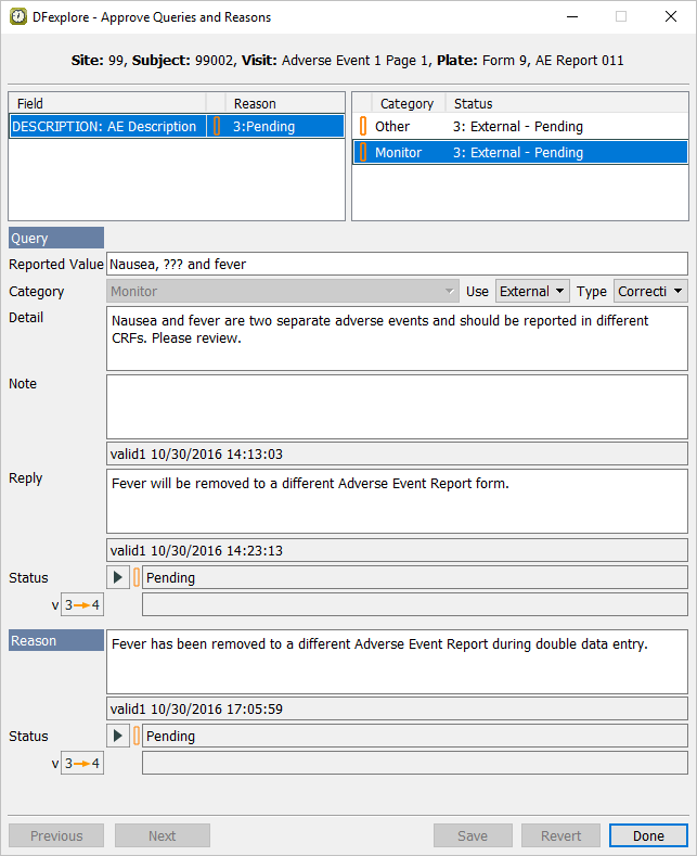 Review and approve a pending reason for data value, and approve a selected query in a field that has multiple queries.
