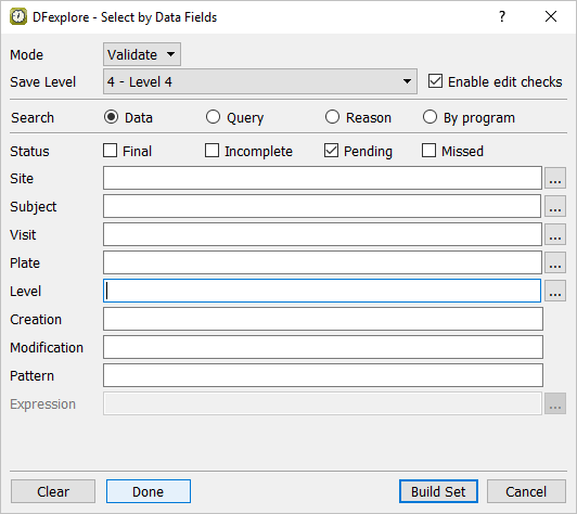 In the Select by Data Fields dialog, set: