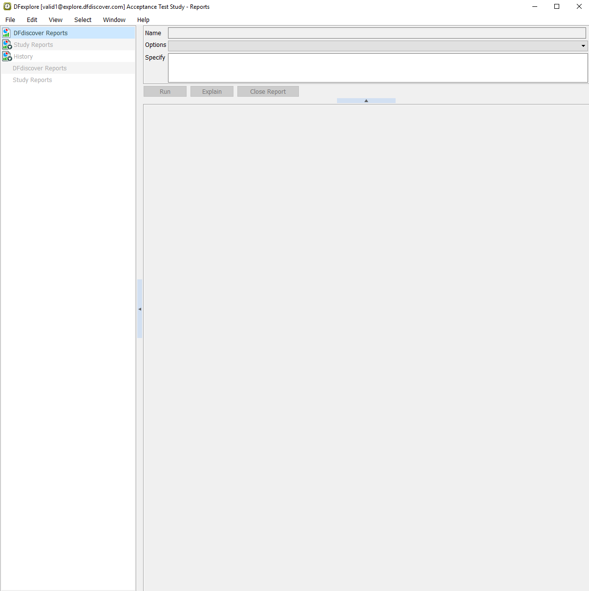 From the list of available studies, select the 254 Acceptance Test Study then click to open its database.