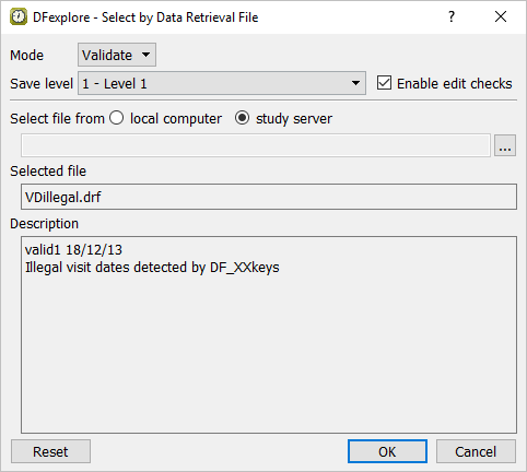 To locate the data retrieval file VDillegal.drf, click next to Select from file option. In the file selection dialog, choose the file VDillegal.drf, then click .