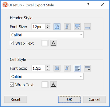 The Excel export function includes definition of basic Excel formatting specifications. Click to display the Excel Export Style dialog.