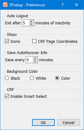 Auto Logout. For security, DFsetup includes an auto logout feature that terminates the DFdiscover server connection after a specified period of inactivity. Values between 1 and 60 minutes may be selected.