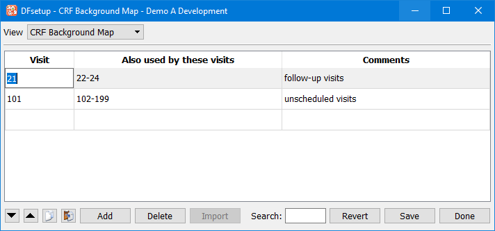 Although each CRF page can be tagged with only 1 visit number it is not necessary to import and tag a separate page for each visit, only for those that require different backgrounds. A set of visits may share the same background by completing the CRF Background Map.