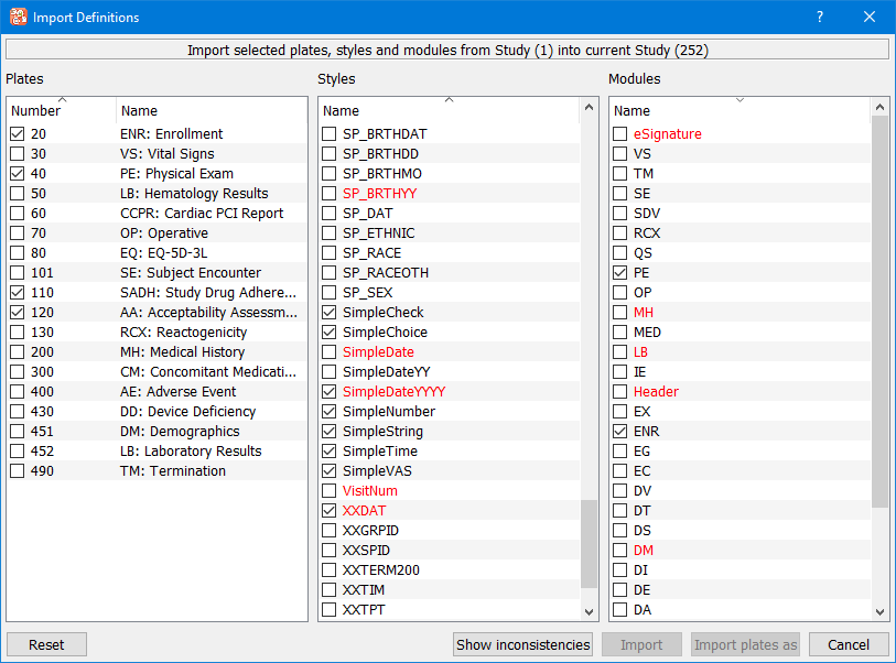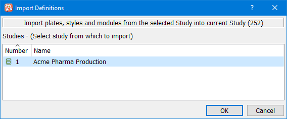 Data fields and styles can be imported from a central library database or any other study database for which the user has permission to view the study setup.