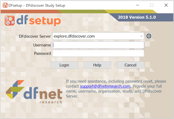 Your login name and password will be the same for all DFdiscover programs (DFsetup, DFexplore and DFadmin) that you have permission to use on the specified server, but may differ across servers.