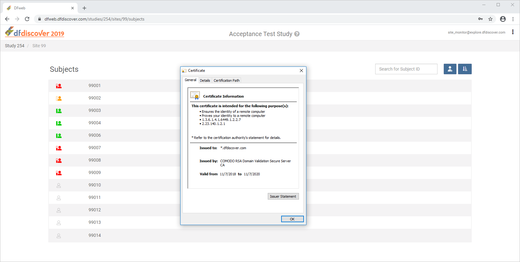 from the web browser address bar. Select . The website trust certificate is displayed for the current DFweb address, click to close the window.