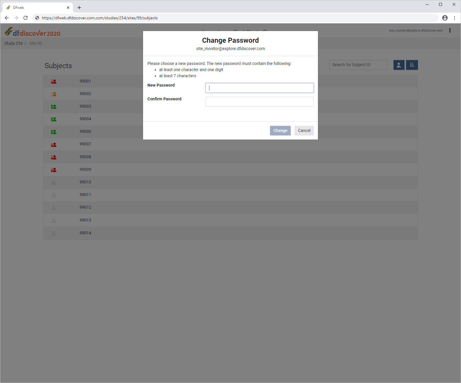 Open a new browser tab, paste the copied URL into the new browser tab, click Enter. The pasted URL in the new tab re-directs you to the DFweb login page. Login again using site_monitor credentials, upon logging in you are taken to the same subject data record as the previous web browser tab. Close the web browser tab.