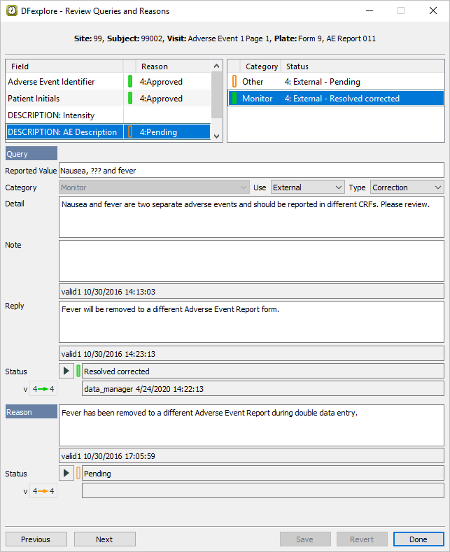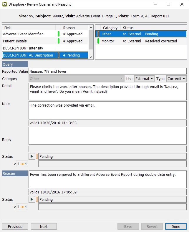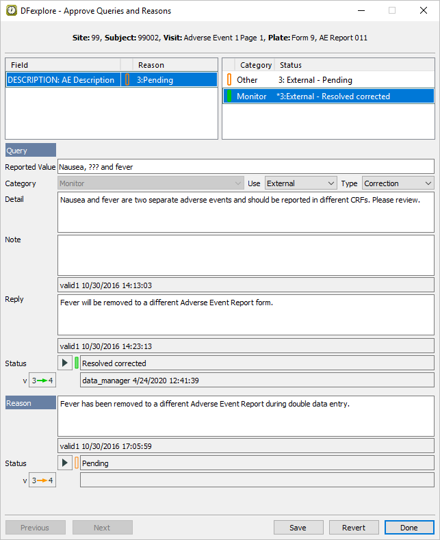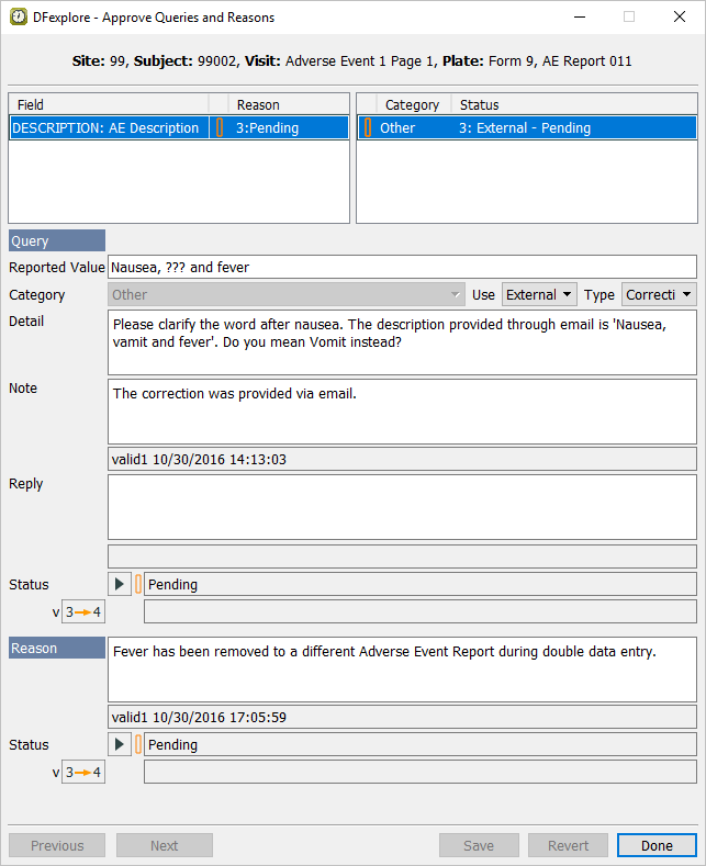 Click . The Approve Queries and Reasons dialog changes from displaying the query with category Monitor to displaying the query with catgeory Other as shown. Click .
