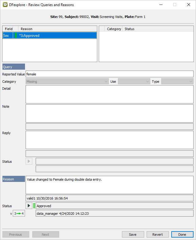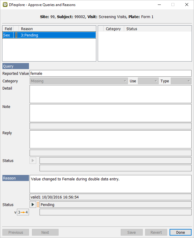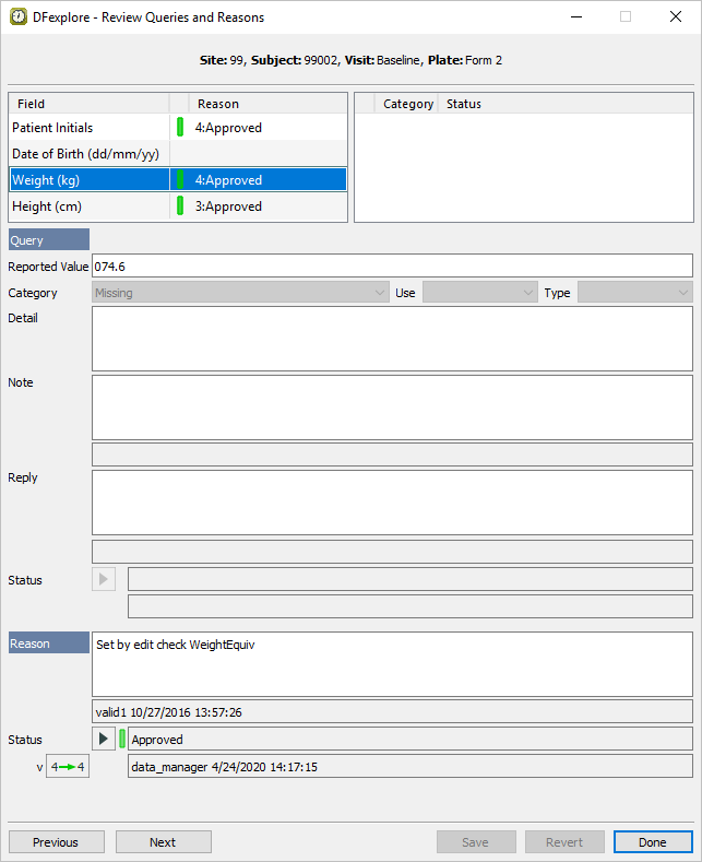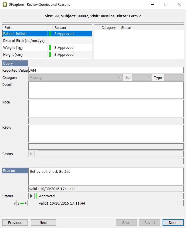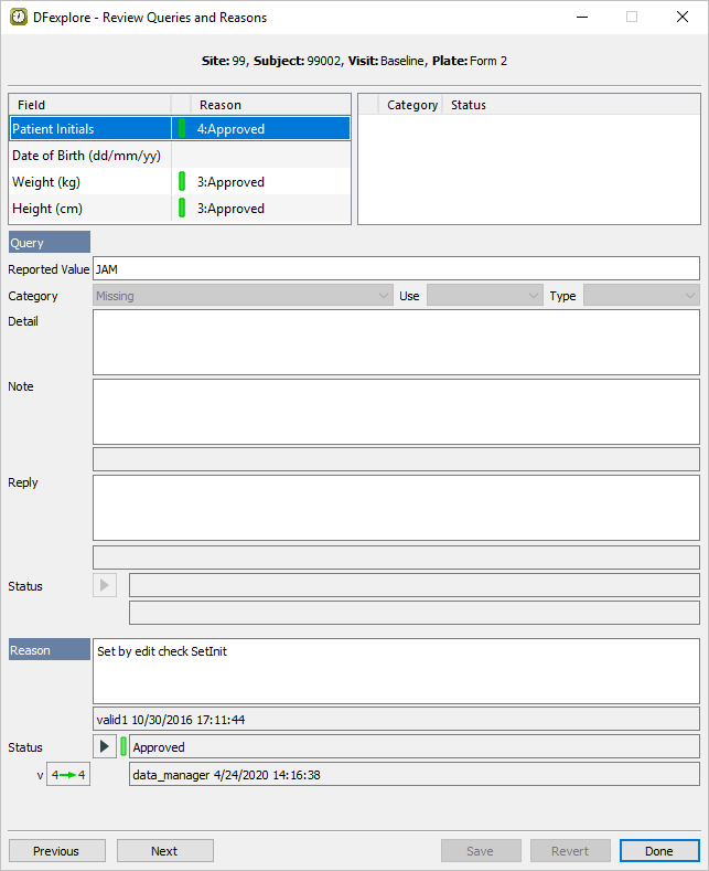 Double-click Subject 99002. Select entry for 2 : Form 2. Select > to review all queries and reasons that are present on the page.