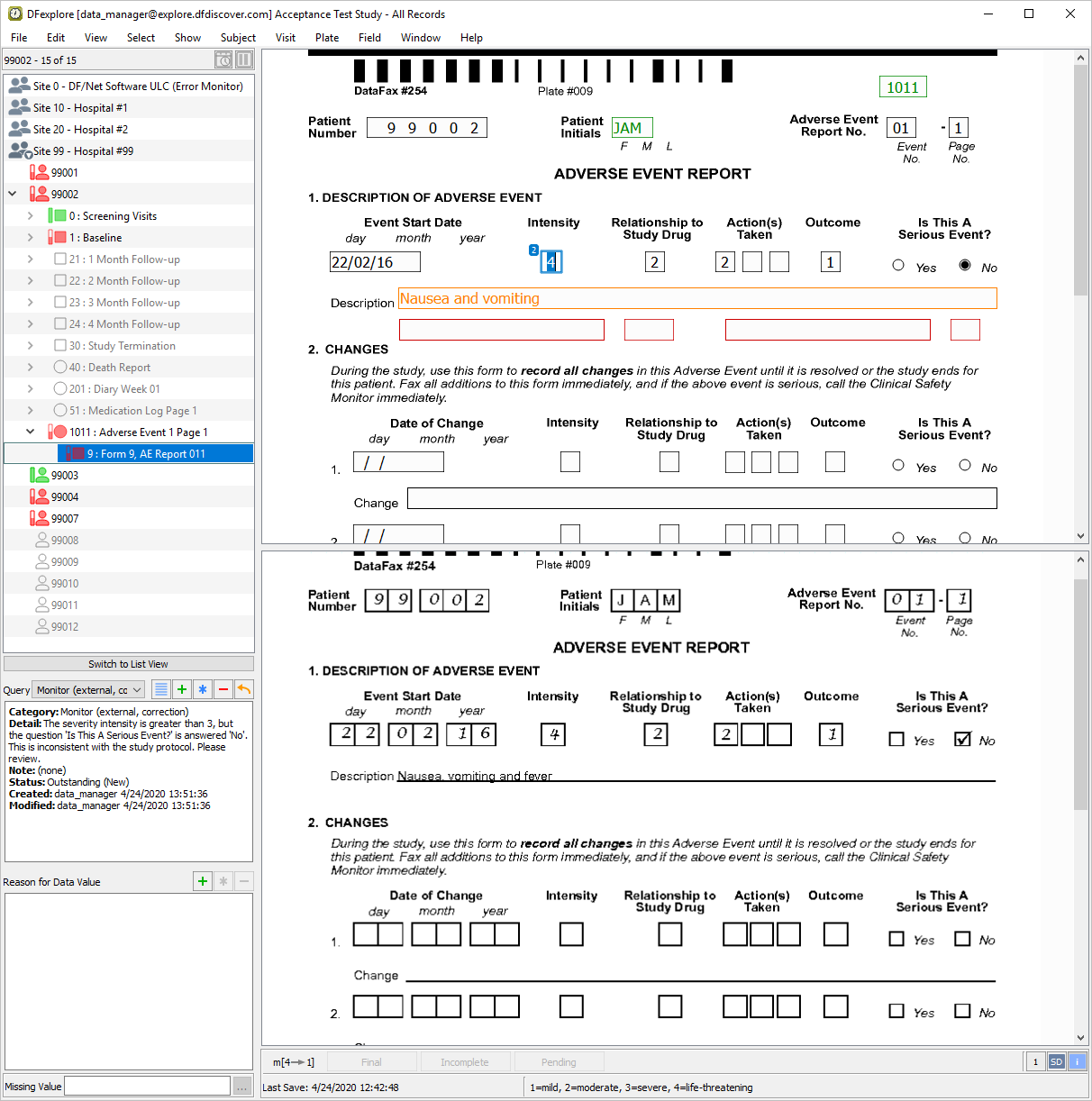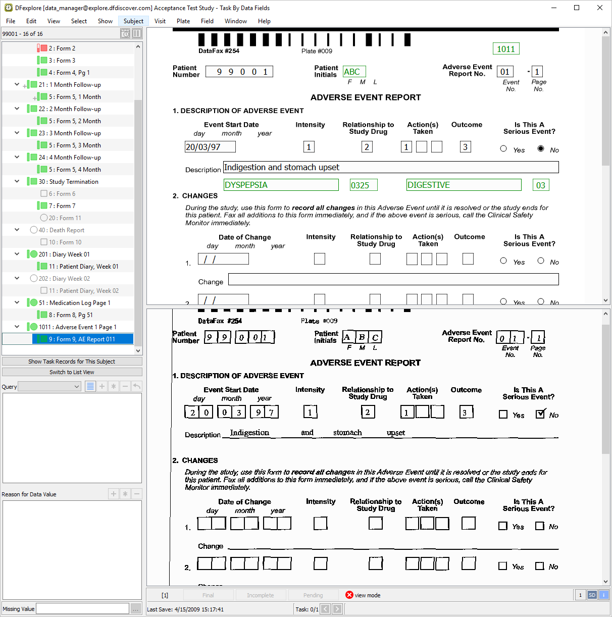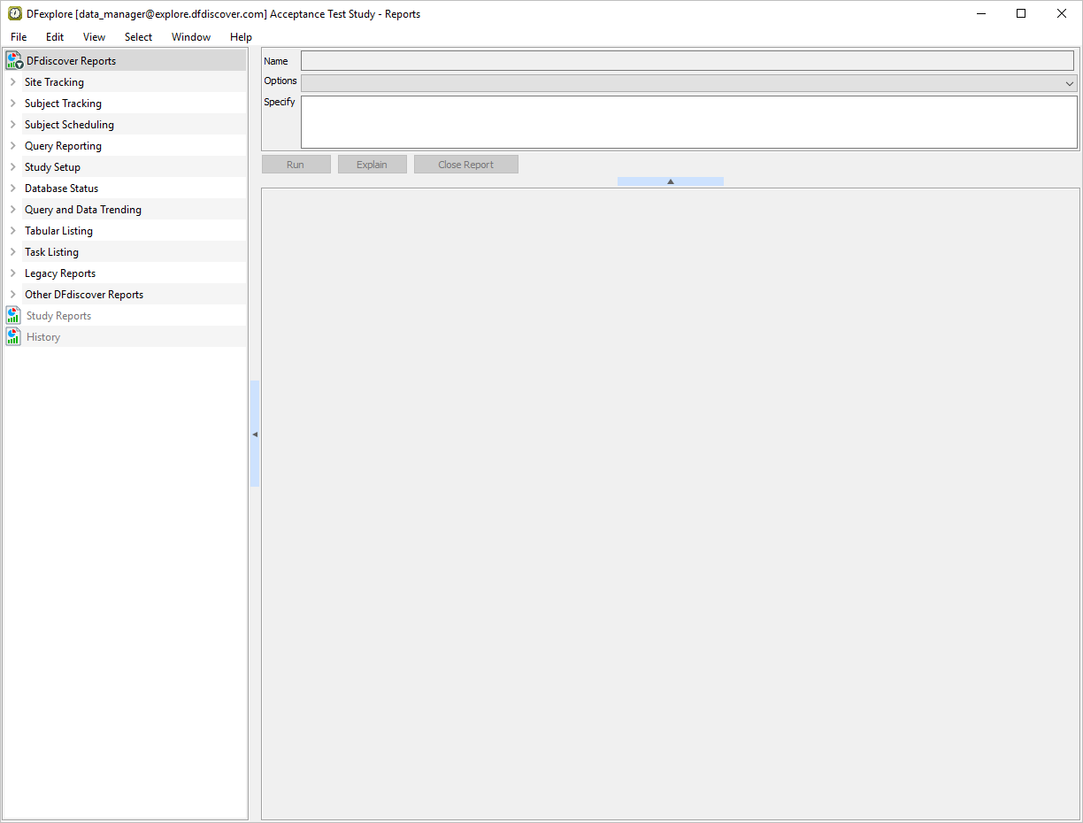 Start DFexplore, login as user data_manager and choose 254 Acceptance Test Study as described in Section 1.7, “How to start DFexplore”.