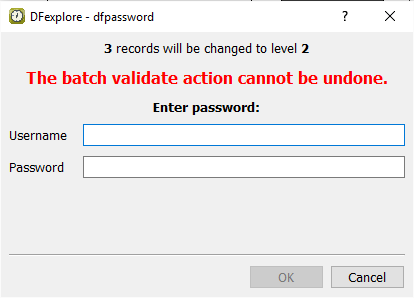 Enter data_coordinator as the Username and the previously assigned password. Click to batch validate the selected records.