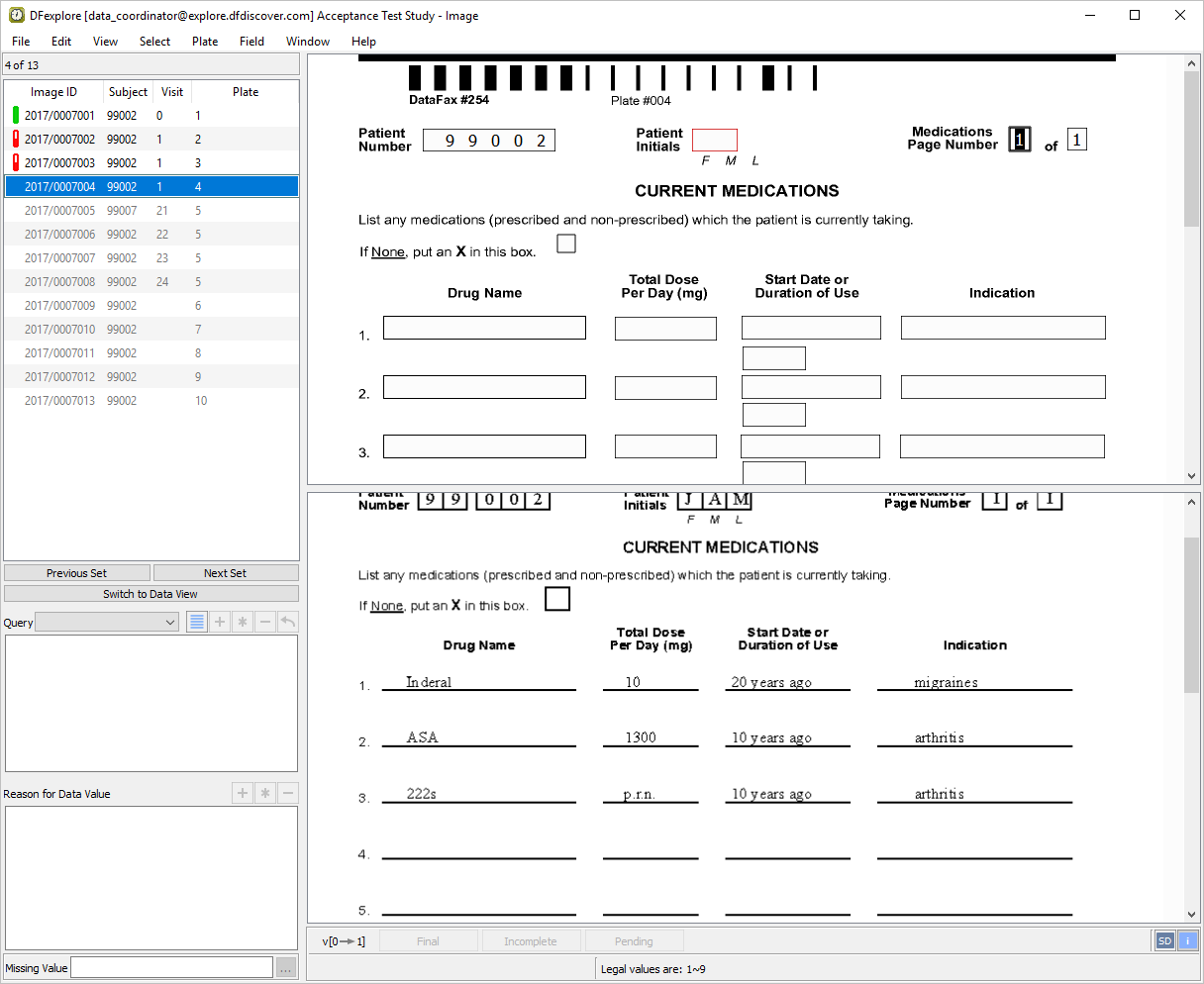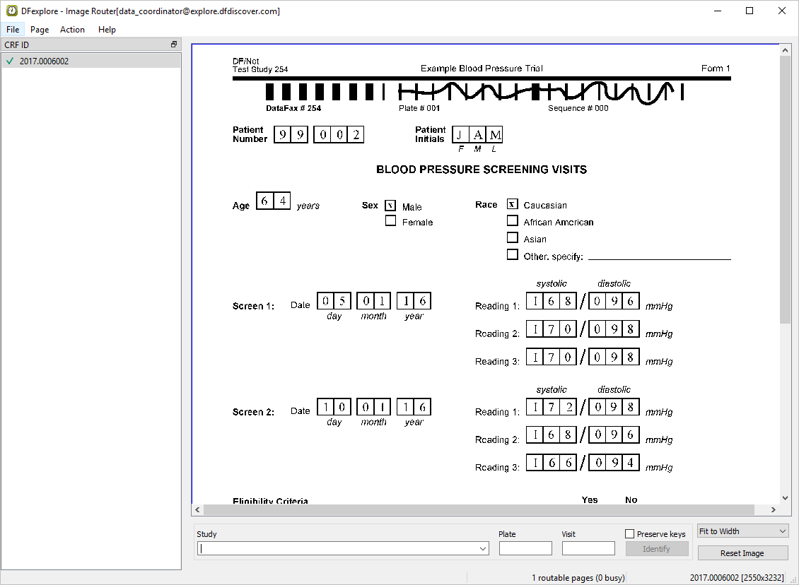 Any pages that have been received and which DFdiscover could not identify as CRFs for any of the studies registered at your site, will be found in the Image Router. If there are more pages than those added by execution of the DFATK, you may need to locate the 254 Acceptance Test Study page in the listing of images. |