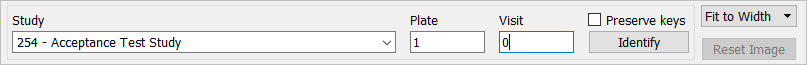 Select 254 - Acceptance Test Study from the Study drop-down list. Enter Plate and Visit numbers, as illustrated. Click to identify the record.