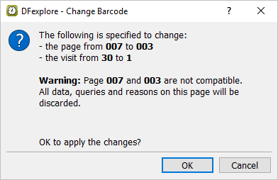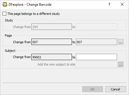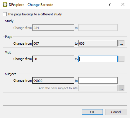In the Change Barcode dialog, set the Page to 003. Do this by clicking to display a listing of all defined study plates, then select the entry 003 - Medical History from the list. Click to close the dialog.