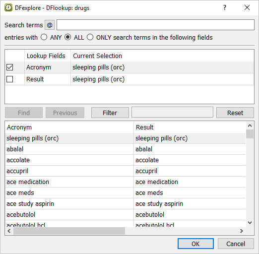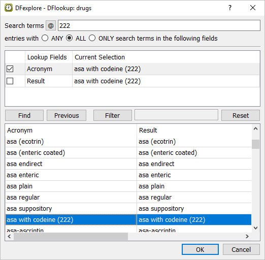 Press Tab to advance to the 3. Drug Name field. An edit check, DrugLookup, has been programmed to match the entered drug text with an entry in a lookup table. Enter the 3rd drug name 222s and press Tab to exit the field executing DrugLookup edit check. (If an entry can not be found in the lookup table, a search dialog is displayed.)