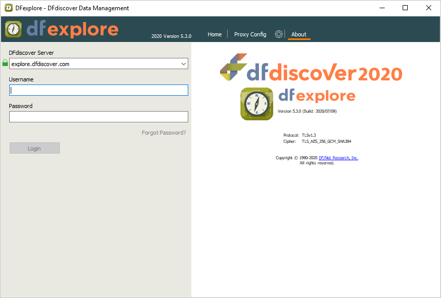 If the version is not DFdiscover 2020 Version 5.3.X, you must stop at this point. The Acceptance Test Kit is specifically designed for release DFdiscover 2020 Version 5.3.X.