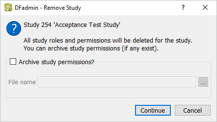 In the Remove Study dialog, de-select (disable) Archive Study Permissions and click .