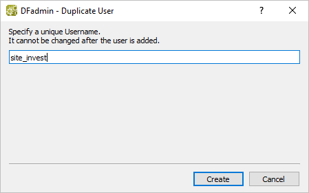 With site_monitor as the active user, click . In the dialog enter a username of site_invest. Click