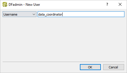With data_coordinator as the active user, click . In the dialog enter a username of data_manager. Click .